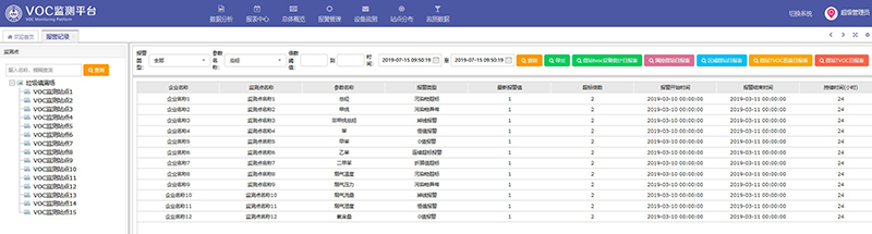 平臺(tái)的主要功能模塊包括:實(shí)時(shí)數(shù)據(jù)、歷史數(shù)據(jù)、數(shù)據(jù)趨勢(shì)、數(shù)據(jù)質(zhì)量、站點(diǎn)分布、統(tǒng)計(jì)報(bào)表、單站報(bào)表、數(shù)據(jù)通比、單站日歷、排放分析、報(bào)警管理、企業(yè)信息、監(jiān)控交流和系統(tǒng)管理等。