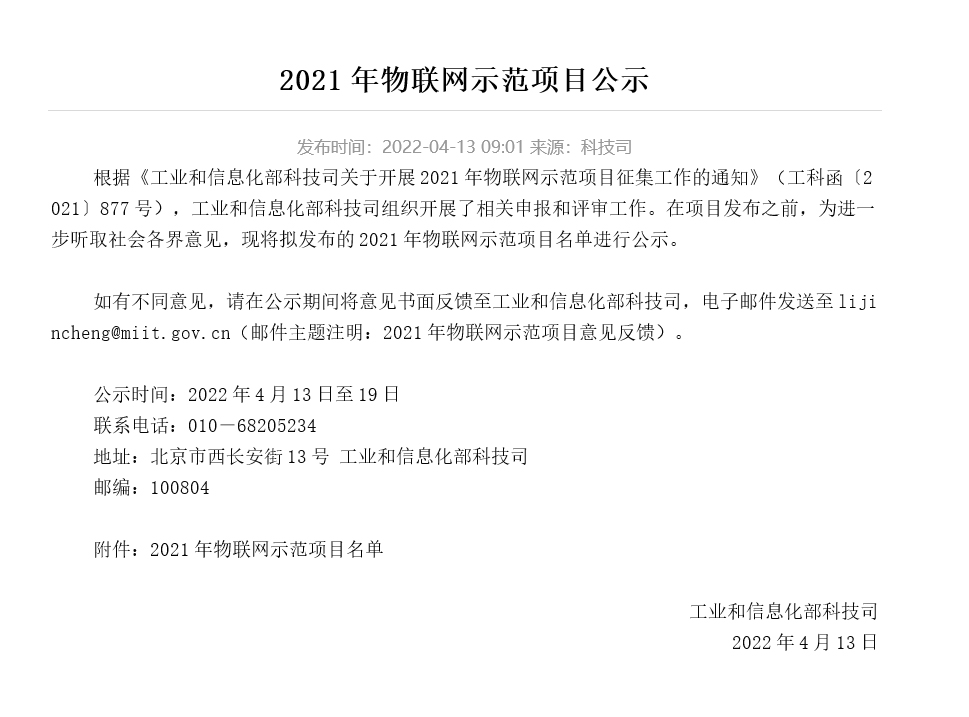 喜報 | 同陽科技強(qiáng)勢入圍工信部2021年度物聯(lián)網(wǎng)示范項(xiàng)目名單